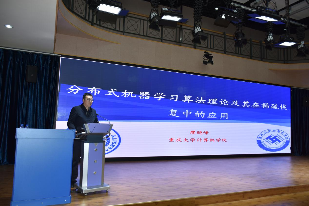 3月9日,国家级人才、享受国务院政府特殊津贴专家、重庆大学计算机学院院长、信息物理社会可信服务计算教育部重点实验室主任廖晓峰教授应邀出席永利官网“联大高端学术论坛”。报告主题为“分布式机器学习算法理论及其应用”。副校长甘健侯主持学术报告,信息学院党政主要领导、科研骨干教师及研究生到场聆听。