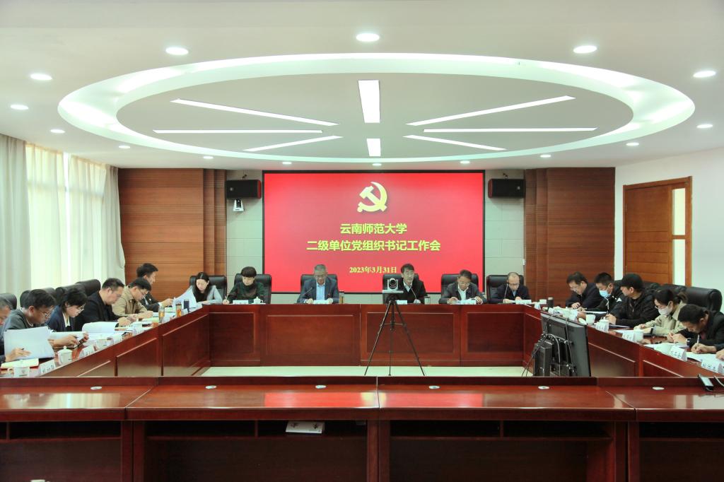 校党委副书记张玮结合2023年学校基层党建重点任务和党建工作责任清单,安排布置了学校近期五个方面的工作:一是强化党的创新理论铸魂育人。深入学习宣传贯彻党的二十大精神,加强政治忠诚教育和党性教育,精心组织实施主题教育;二是推动基层党建工作全面提质增效。推动党建和教育事业发展深度融合,推动党建工作全面提质增效;三是提升党组织统筹力服务力组织力。实施基层党组织“战斗堡垒工程”、党员队伍先锋模范工程、“智慧党建”创新赋能工程,实施学院(学部)党组织政治功能提升行动、党支部组织生活质量提升行动,教师党支部书记“双带头人”培育质量提升行动、发展党员质量提升行动;四是持续擦亮基层党建工作品牌。深化示范党组织创建,强化总结宣传;五是强化党对群团工作的全面领导。聚焦中心大局发力,推动群团组织规范化建设,深入开展云岭先锋党建带群建示范创建。