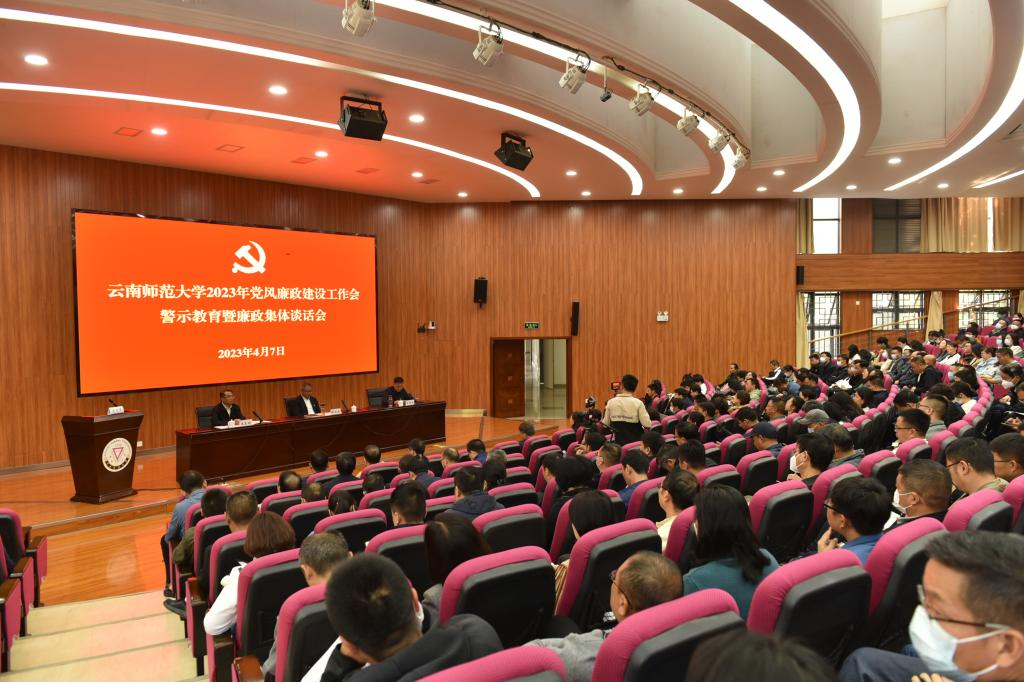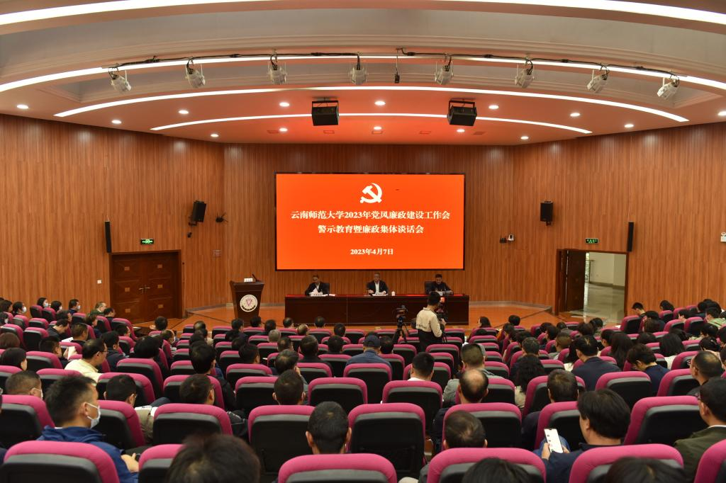 4月7日上午,永利官网2023年度党风廉政建设工作会、警示教育暨廉政集体谈话会在呈贡校区汇学楼报告厅举行。校党政领导班子成员、省管干部,校党委常委、党委委员、纪委委员,全校处级干部,各基层党委、党总支、直属党支部纪检委员,特约监督员,各职能部门党支部纪检委员,十个关口部门科级干部参加会议。会议由校党委副书记、校长王德强主持。