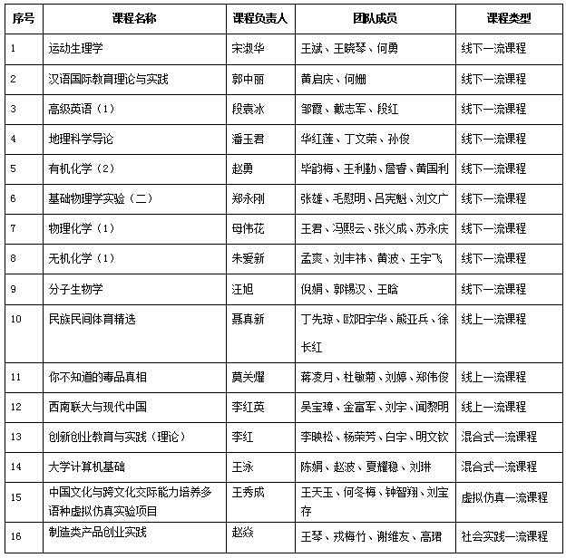 4月11日,教育部高等教育司发布了《关于第二批国家级一流本科课程认定结果的公示》,永利官网共有16门课程入选国家级一流本科课程认定结果公示名单,其中线下一流课程9门,线上一流课程3门,混合式一流课程2门,虚拟仿真一流课程1门,社会实践一流课程1门,实现了国家级各类一流课程全覆盖,总体数量居云南省高校第二,与第一批相比取得了重大突破。