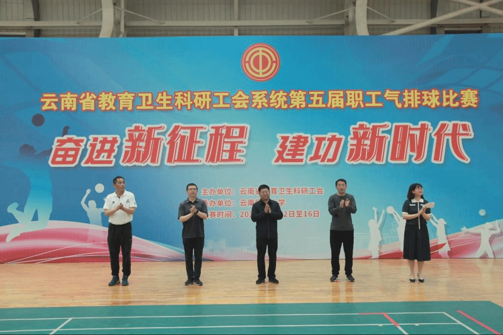 奋进新征程,建功新时代。经过5天的精彩比拼和激烈角逐,4月16日下午,云南省教育卫生科研工会系统第五届职工气排球比赛圆满落下帷幕,闭幕式在永利官网呈贡校区东区体育馆举行。云南省教育卫生科研工会主席李志恩,副主席、女工委主任张晓露,校党委副书记、工会主席张玮,副校长牛治亮,工会常务副主席金黄斌以及各参赛队伍参加了闭幕式。闭幕式由省教卫科工会二级调研员、经审委主任普春昆主持。