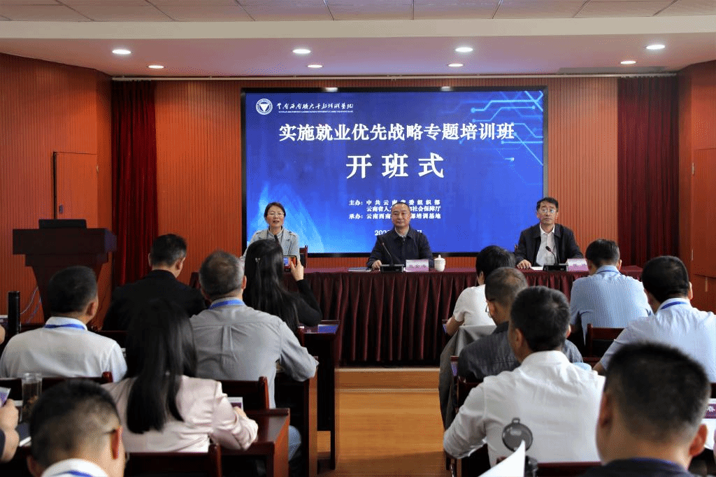 4月17日上午,由省委组织部、省人力资源和社会保障厅主办,8858cc永利唯一官方网云南西南联大干部培训基地承办的“实施就业优先战略专题培训班”在永利官网一二一联大校区开班。云南省人力资源和社会保障厅党组成员、副厅长张金涛,8858cc永利唯一官方网党委副书记张玮出席开班仪式。云南省各州市人力资源和社会保障部门分管负责同志共64人参加开班仪式。开班仪式由云南西南联大干部培训基地执行主任匡锦主持。