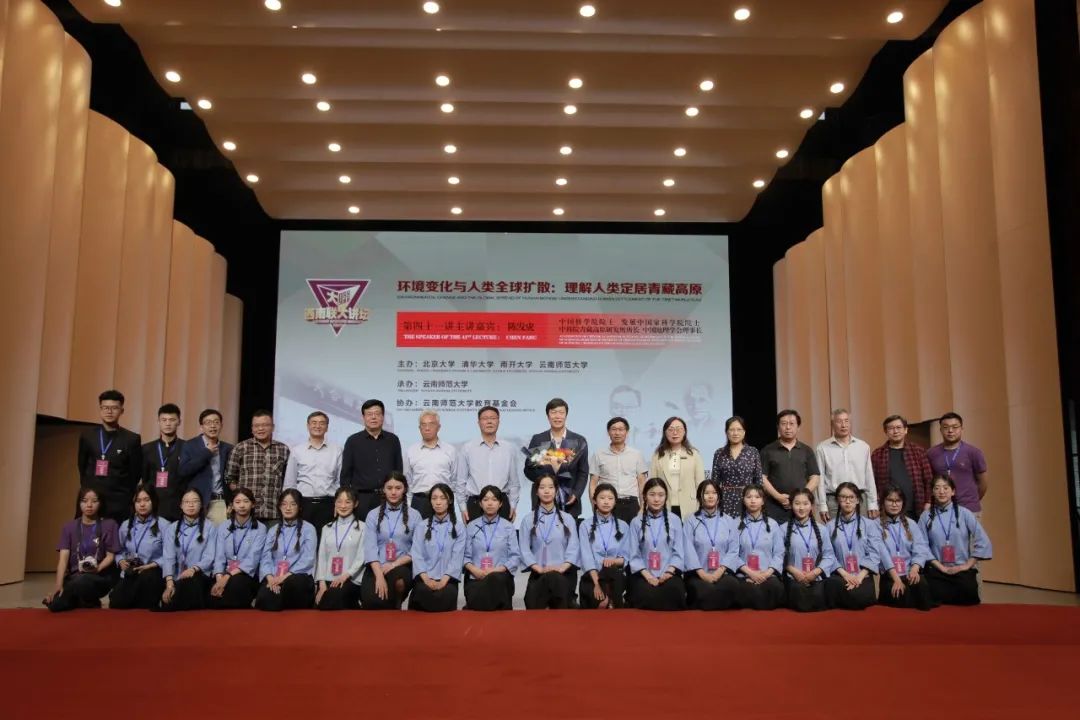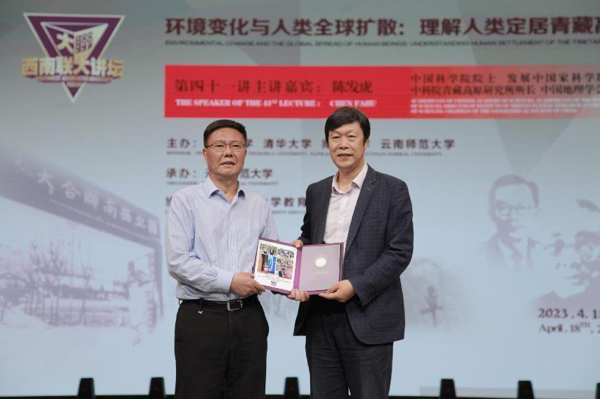 4月18日,由北京大学、清华大学、南开大学、8858cc永利唯一官方网四校共同主办,8858cc永利唯一官方网承办的“西南联大讲坛”第41讲在永利官网呈贡校区举行。中国科学院院士、发展中国家科学院院士、中科院青藏高原研究所所长、中国地理学会理事长陈发虎作为主讲嘉宾,为与会在昆师生代表带来题为“环境变化与人类全球扩散:理解人类定居青藏高原”的讲座。讲座同步进行了网络直播。