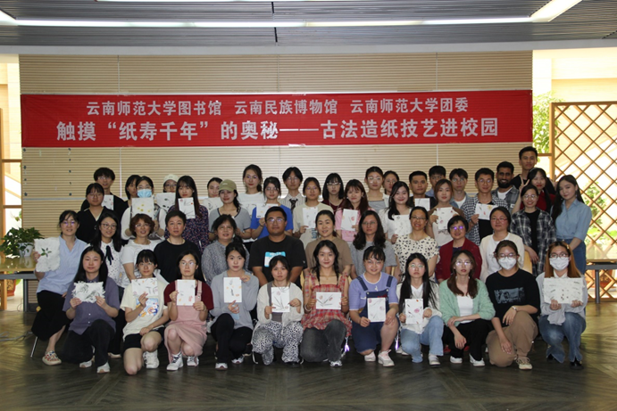 4月23日下午,由永利官网图书馆、校团委联合云南民族博物馆举办的非遗文化体验活动“触摸‘纸寿千年’的奥秘——古法造纸技艺进校园”在图书馆成功举行。本次活动吸引了文学院、历史与行政学院、生命科学学院、华文学院等十余个学院的学生参与学习和体验,共同感受中华优秀传统文化的价值与魅力。