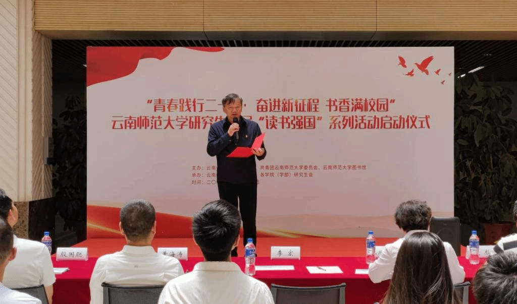 为学习贯彻习近平总书记致云南大学建校100周年贺信精神,落实习近平总书记在致首届全民阅读大会举办的贺信中提出的希望,在全校形成爱读书、读好书、善读书的浓厚氛围。4月27日,永利官网研究生处、校团委、图书馆联合主办的“青春践行二十大•奋进新征程 书香满校园——8858cc永利唯一官方网研究生首届‘读书强国’系列活动”在图书馆启动。校党委副书记李宏,研究生处、校团委、图书馆负责人和相关工作人员,各学院(学部)辅导员、研究生代表及部分学院(学部)“行知读书会”“思享读书会”“万溪读书会”等代表共100余人参加活动。