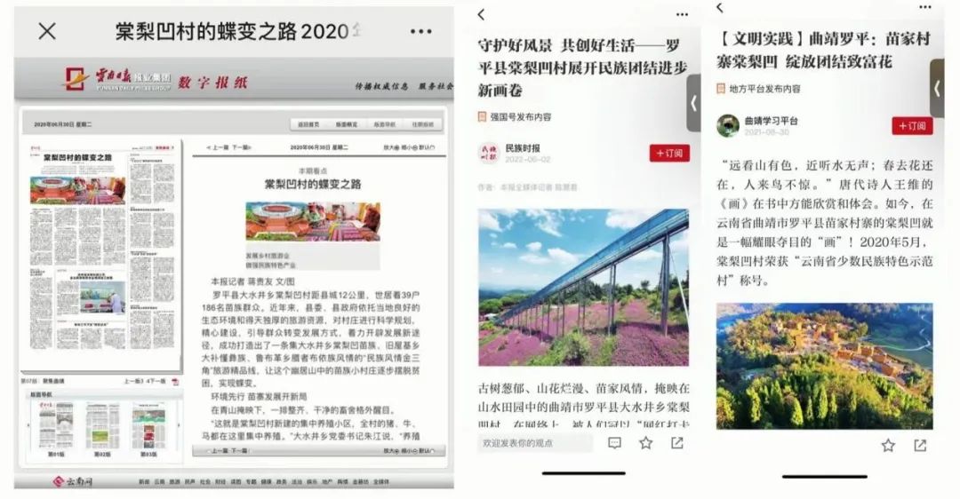 然而,项目建设并非一帆风顺,他们也遇到过很多难题,比如资金与设计之间产生矛盾、部分村民不配合、建设期间遇到的技术问题等等,都需要一个一个去沟通、去协商、去优化,实现价值最大化。经过两年的时间,在攻克了一个个难关后,吴春桃作为主创设计师成功打造出了棠梨凹苗族文化村,为罗平旅游做出了新贡献,为当地的苗族群众脱贫致富、持续增收开辟了一条新路子。村民们对此非常激动,对未来的生活有了更多的期待。国家乡村振兴研究院、国家发改委、省政协的领导到设计现场进行观摩,清华北大等高校团队也进行了实地调研,对该乡村振兴项目给予了极高的评价,学习强国、《人民日报》等平台先后进行了报道。