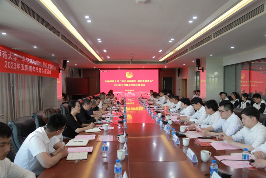 在2023年五四青年节师生座谈会上,学校领导与青年师生代表深入学习了习近平总书记致云南大学建校100周年重要贺信精神、习近平总书记给中国农业大学科技小院学生的重要回信精神以及习近平总书记关于青年工作的重要思想,激励青年勇担使命。