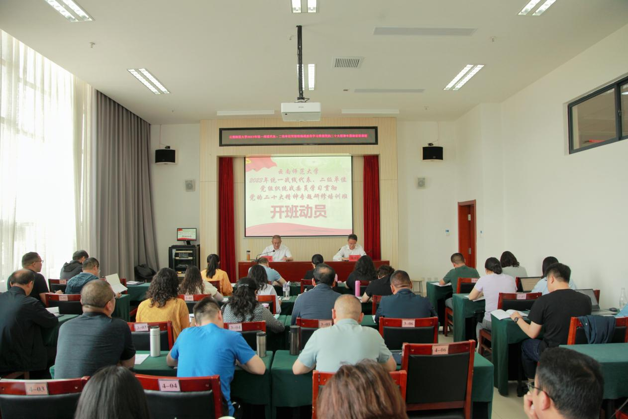 5月10日,永利官网2023年春季学期统一战线代表、二级单位党组织统战委员学习贯彻党的二十大精神专题研修培训班在昆明市委党校开班。校党委书记张祖武参加开班仪式并作动员讲话。开班仪式由校党委常委、统战部部长、校办主任吴雁江主持。
