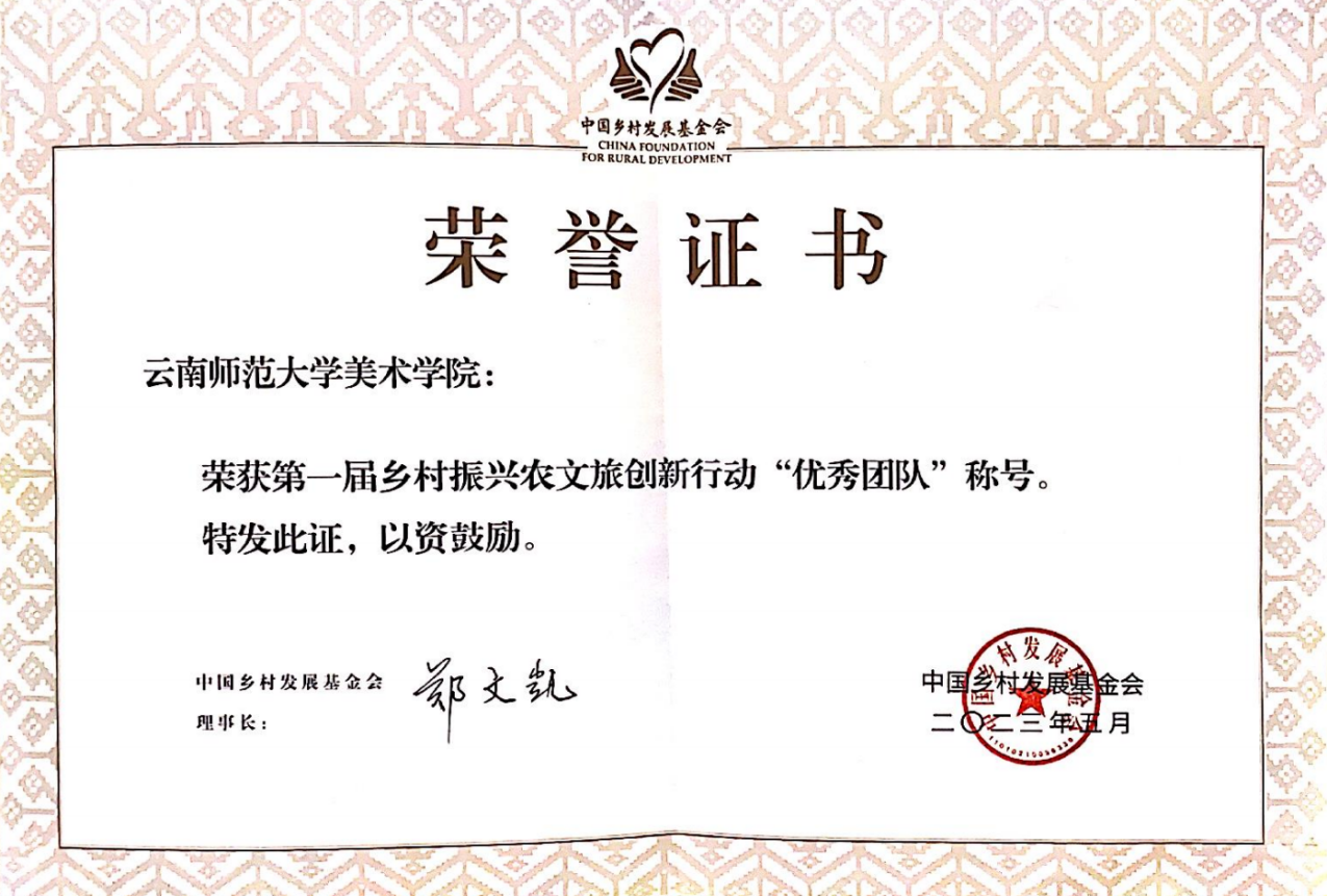 5月17日,第一届乡村振兴农文旅创新行动成果发布会在北京举行,永利官网美术学院作为云南省参加此次活动的唯一高校团队,荣获“优秀团队”称号。同时,该团队设计也成为参加的十所高校中唯一实现前期实地调研到后期落地量产的设计团队作品。