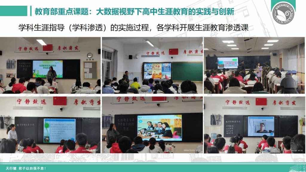 云南师大附中高中生涯规划教育秉承全员参与、团队实施、家校协作的理念,尊重学生个体及社会发展的实际,以学生为主体,聚焦在“引导生涯探索、助力选科升学、解决现实困境、支持终身发展”几大方面,通过全员育人、活动育人、环境育人、学科融合,发掘学生资源和潜能,注重“积极品质”“社会适应”“自主发展”能力的培养。