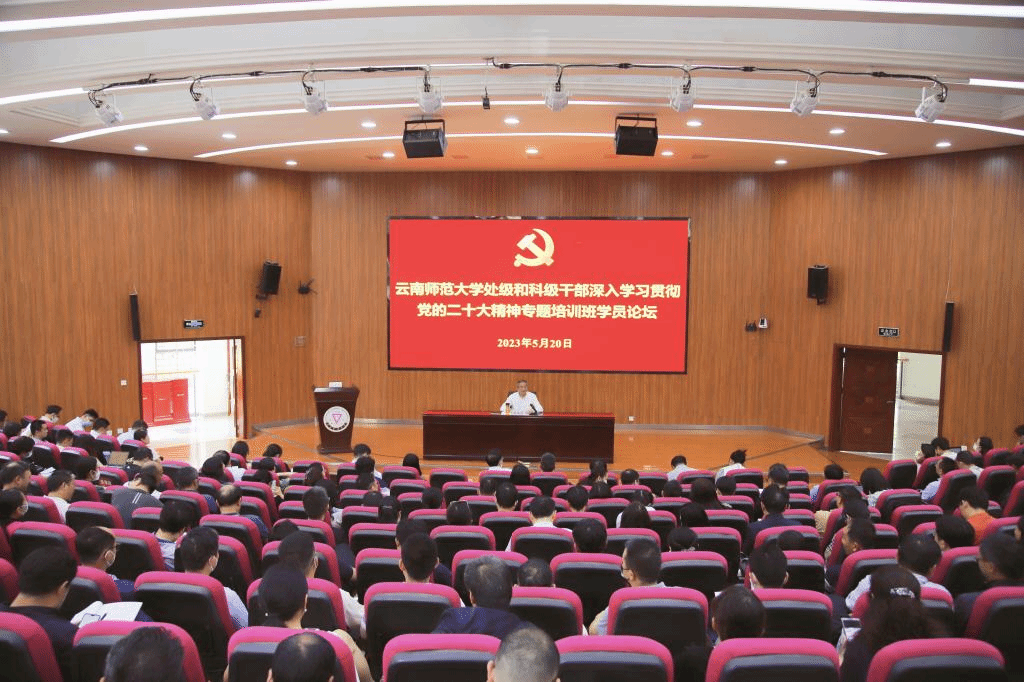 本次专题培训为期5天,聚焦党的二十大精神,以专题辅导、分组研讨、学习交流等方式进行。在专题辅导中,学校邀请到中央党校博导、中央马克思主义理论研究和建设工程专家组成员傅思明教授,北京师范大学中共党史党建研究院院长王炳林教授,国家教育行政学院原副院长李文长教授,云南省人民检察院陈安平检察官,浙江外国语学院党委书记宣勇教授,省社会科学院副院长黄小军研究员,省委党校副校长马金书教授,省委网信办网络综合协调管理和执法督查处处长赵志忠分别作了辅导。在分组讨论中,学员们畅所欲言,气氛热烈,纷纷表示要把学习贯彻落实好党的二十大精神作为当前和今后一段时期的首要政治任务,坚定拥护“两个确立”,坚决做到“两个维护”,落实立德树人根本任务,努力为党和国家培养输送一批又一批“四有”好老师和拔尖创新人才,推进学校建设西部领先、辐射南亚东南亚的高水平师范大学,更好服务教育强国、科技强国和人才强国建设,为全面建设社会主义现代化国家、全面推进中华民族伟大复兴作出新的贡献。