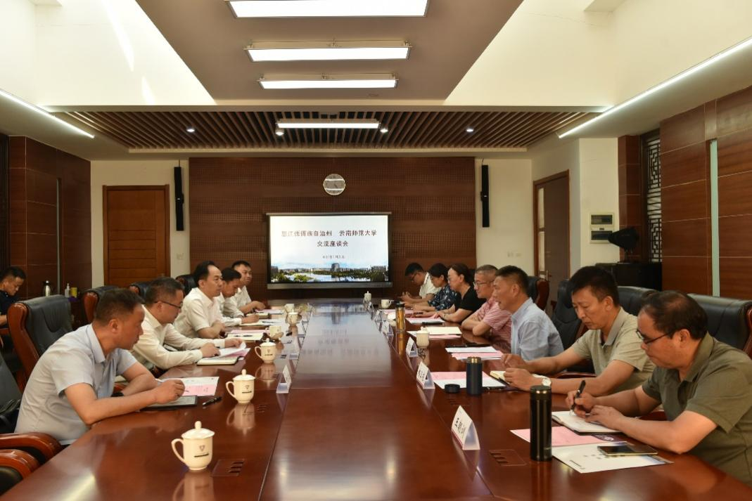 王德强对洪维智一行的到来表示欢迎,并介绍了学校建设发展和学科专业建设基本情况。施青团介绍了怒江州教育发展情况。双方就推进校地合作协议、深化教育帮扶进行了深入交流。