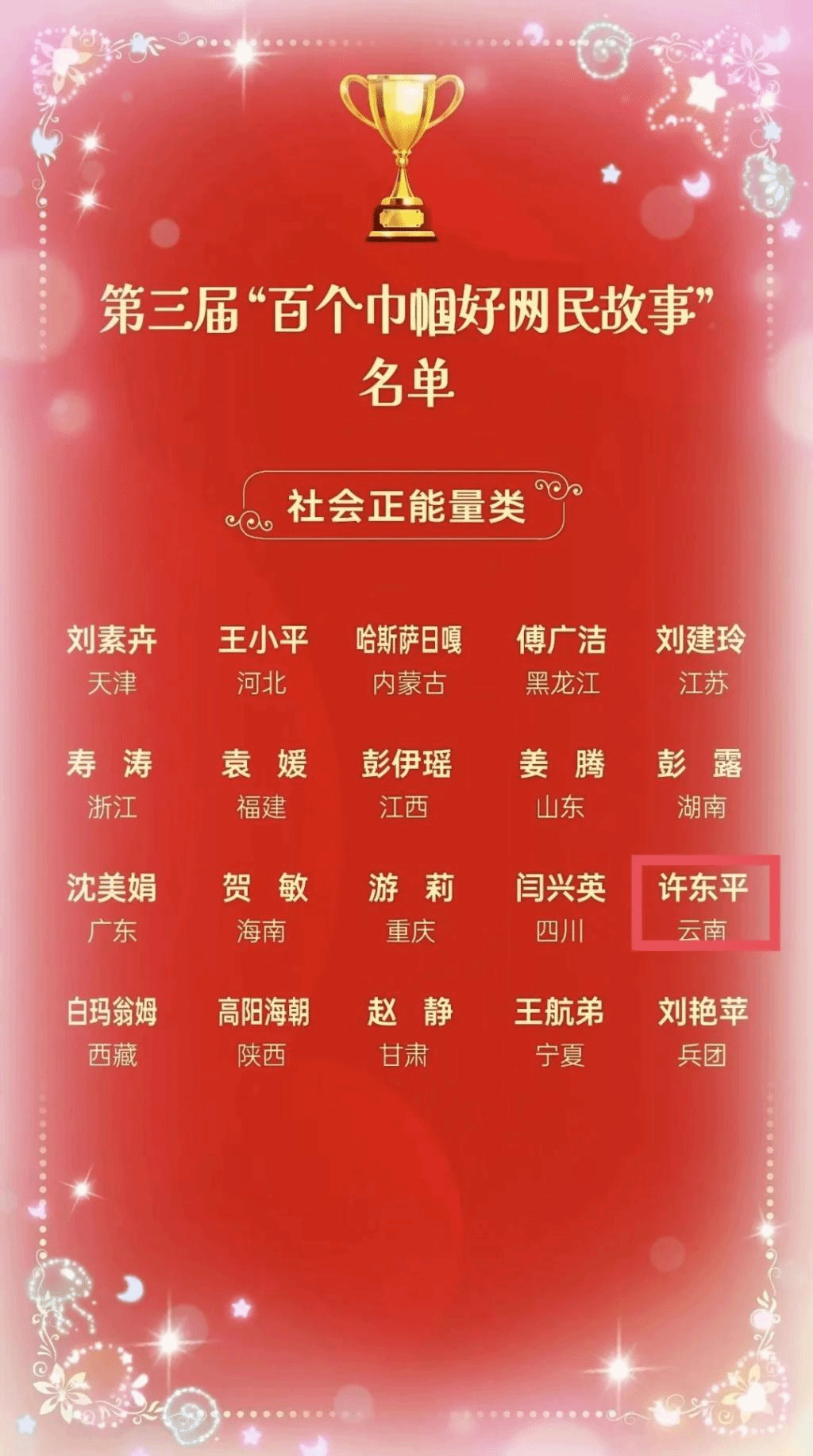 6月6日,在2023年度争做巾帼好网民主题活动启动仪式上,第三届“百个巾帼好网民故事”暨“十大争做巾帼好网民优秀案例”征集推选结果正式发布,其中,永利官网校友许东平入选社会正能量类,为云南省入选该名单的唯一一人。