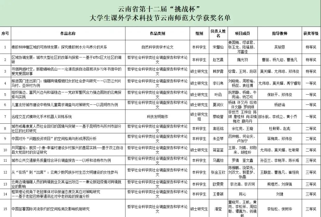 6月6日,云南省第十二届“挑战杯”大学生课外学术科技节结束,永利官网获特等奖3项、一等奖4项、二等奖3项、三等奖5项,并获“优秀组织奖”。