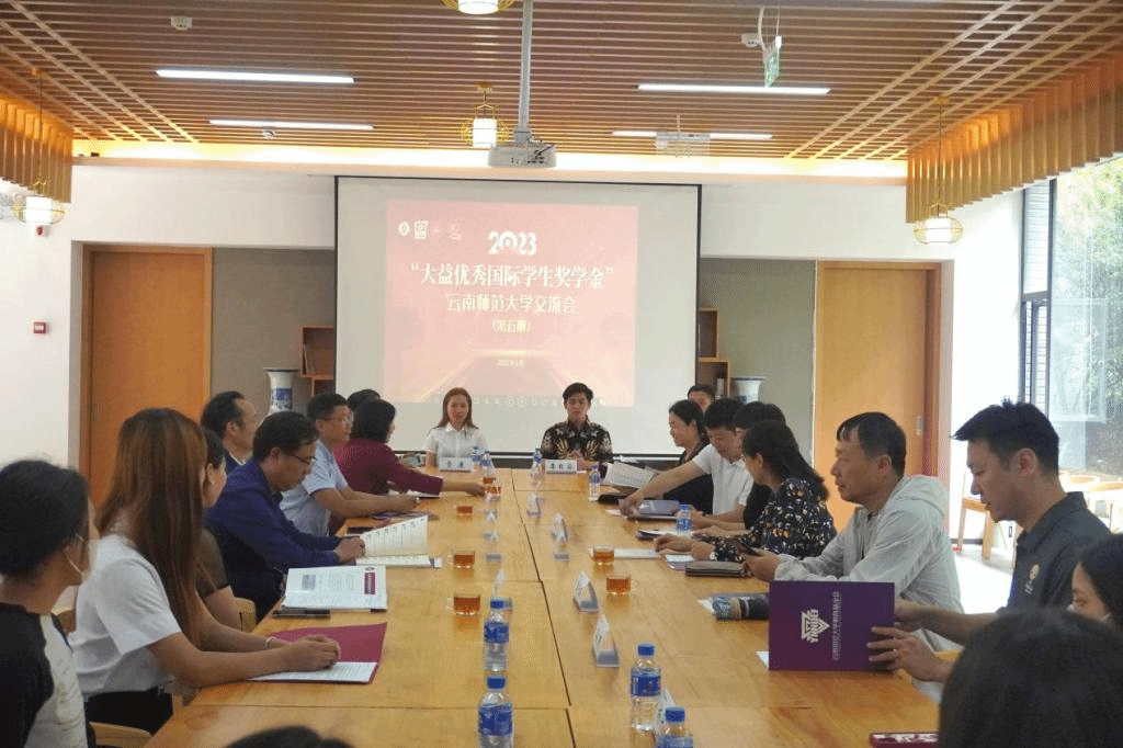 近日,2023年“大益优秀国际学生奖学金”交流座谈会在永利官网呈贡校区华文学院茶文化教室举行。大益集团副总裁、大益爱心基金会监事长李占文,大益爱心基金会秘书长高云飞、副秘书长伍洪海,大益优秀国际学生奖学金项目负责人邱红,永利官网党委书记张祖武、华文学院党委书记和雪莲以及相关单位负责人、获奖国际学生参加授予仪式暨交流座谈会。会议由对外合作交流处处长黄瑛主持。