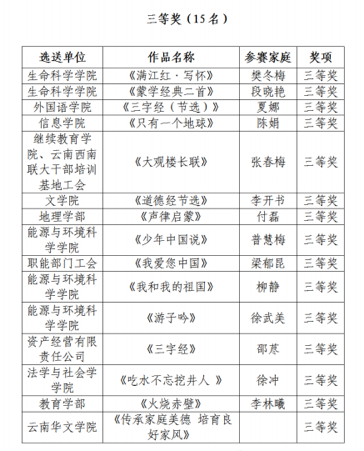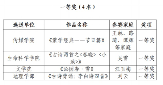 本次“颂党恩·咏经典·传家声”亲子诵读活动共收到17个分工会选送的30个作品,经过工作组的认真评审,最终评定特等奖3名、一等奖4名、二等奖8名、三等奖15名。