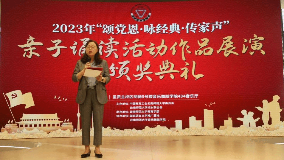 为全面贯彻落实党的二十大精神和习近平总书记关于注重家庭家教家风建设的重要论述,传承弘扬中华优秀传统文化,彰显中华语言与文化魅力,6月15日晚,由校工会、校妇联联合主办的“颂党恩·咏经典·传家声”亲子诵读活动优秀作品展演暨颁奖典礼在音舞学院音乐厅成功举行。