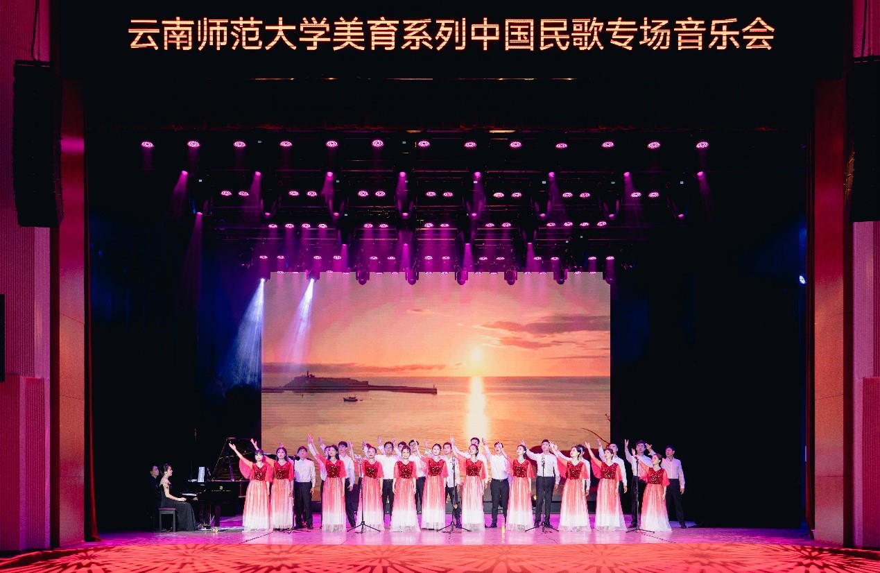 为加强和改进高等学校美育工作,提升公共艺术课程的育人成效,推动中华优秀传统文化创造性转化,与研究生课程体系建设有机衔接,6月20日晚,8858cc永利唯一官方网美育系列——中国民歌专场音乐会暨研究生《专业创演课》教学案例库成果展示在明德5号楼演播厅举行。校党委副书记李宏、副校长陈正权,相关单位负责人,以及500余名师生出席音乐会。音乐会由校公共艺术教育中心副主任何纾导演策划,韩萍教授担任艺术指导,云南广播电台著名主持人赵海清主持。
