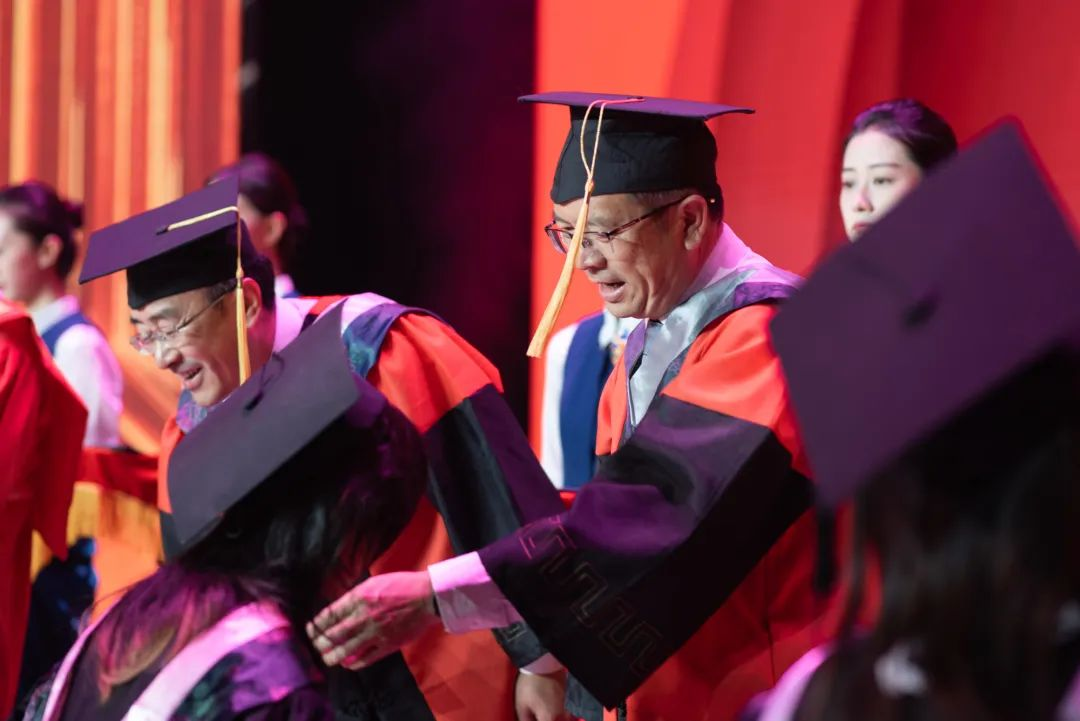 数载励志求学,一朝毕业礼成。学位授予仪式上,校领导分别为毕业生代表一一拨穗,学位帽上的流苏从右侧到左侧轻轻划过,象征着谷穗成熟,标志着同学们学业的完成和新生活的开始。毕业生们今后将正式踏上新的征程,迎接更广阔的世界,担负起更重要的使命。
