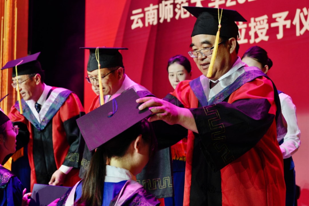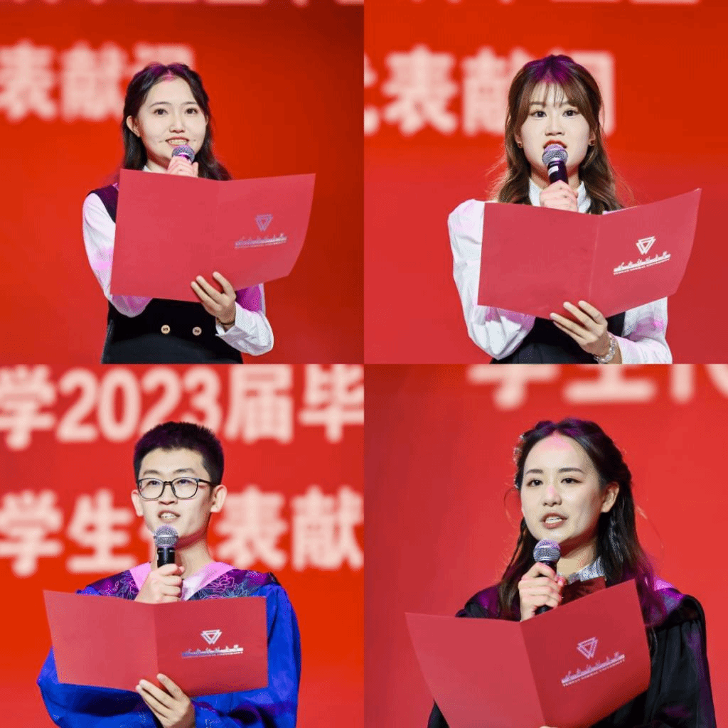 本科毕业生代表黄愿如深情讲述了大学四年她以澄澈之心丈量大地,以好奇之眼探索世界,以敏锐之感拥抱生活,努力成为更好的自己的经历和感受;硕士毕业生代表吴春桃回顾了七年在校期间的求学经历,分享了理论最终要在实践中检验的学习感悟。在校研究生代表夏煜表示,将接过学长们奋斗的接力棒,在追梦圆梦中鼓舞斗志,砥砺前行。在校本科生代表李思语表示,今后将向学长们看齐,赓续西南联大爱国主义精神,争做民族复兴的时代新人。
