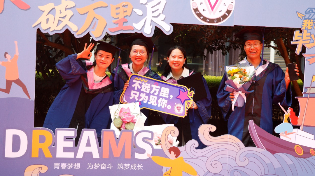 会堂前,师生合影留下美好瞬间,互致祝愿表达良好期许。歌声起,心潮涌,毕业生们身着学位服,纷纷踏入会场。动情处,灿烂的笑容难掩晶莹的泪花,温情的拥抱述说离别的不舍。
