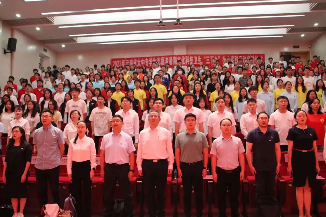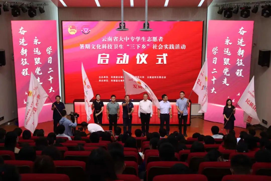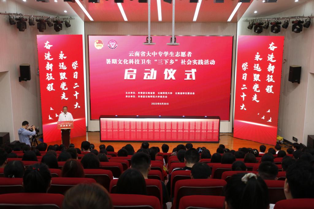 为深入学习贯彻习近平新时代中国特色社会主义思想,认真学习贯彻习近平总书记同团中央新一届领导班子成员集体谈话时的重要讲话和团十九大精神,组织广大青年学习践行习近平新时代中国特色社会主义思想,6月30日,由共青团云南省委、8858cc永利唯一官方网、云南省学生联合会主办,共青团8858cc永利唯一官方网委员会承办的2023年云南省大中专学生志愿者暑期文化科技卫生“三下乡”社会实践活动启动仪式在永利官网呈贡校区能源与环境科学学院报告厅举行。