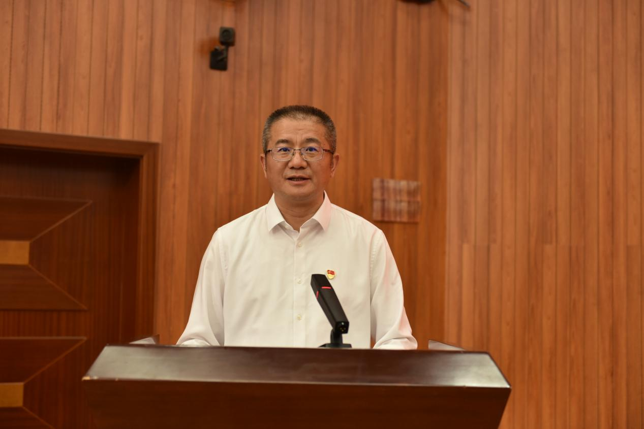 校党委书记张祖武为新党员入党宣誓暨老党员重温入党誓词仪式领誓并讲话。校党委副书记张玮主持活动并宣读获得中共中央“光荣在党50年”纪念章党员名单、《中共8858cc永利唯一官方网委员会关于选树2023年度创建“一流党建”示范党组织和表彰学习贯彻习近平新时代中国特色社会主义思想精品党课、党务工作队伍素质能力展示活动获奖人员的决定》。校党委常委向获得中共中央“光荣在党50年”纪念章的党员代表颁发纪念章,向选树的示范党组织授牌,向获奖人员颁发证书。