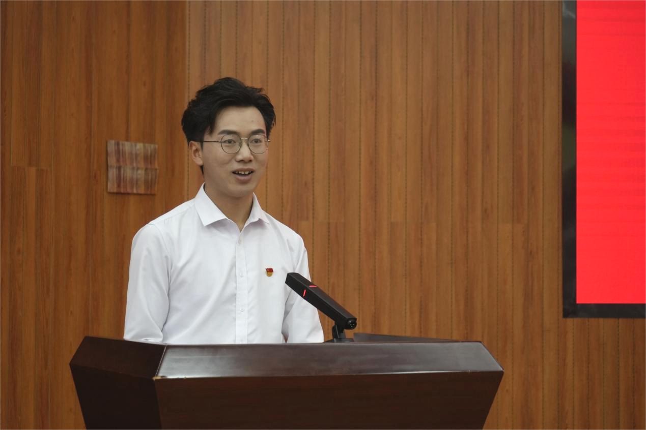 新发展党员代表、传媒学院本科生杨曦然在发言中表示,在今后的学习和工作中,一定坚定不移跟党走,脚踏实地学好真本领,发挥党员的先锋模范作用,在全面建设社会主义现代化国家的火热实践中奉献青春。