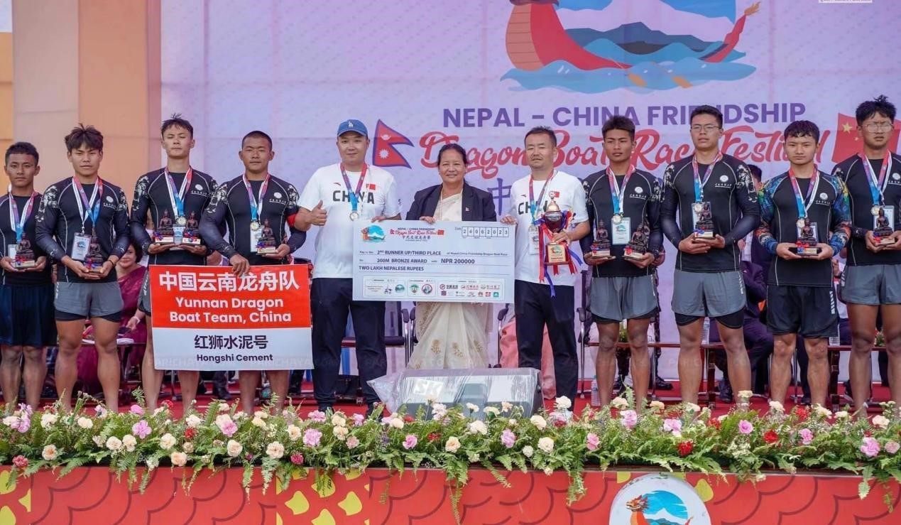 永利官网龙舟代表队一行15人在尼泊尔进行了交流比赛,经过激烈角逐,荣获200米和500米季军,展示出了良好的竞技风貌。