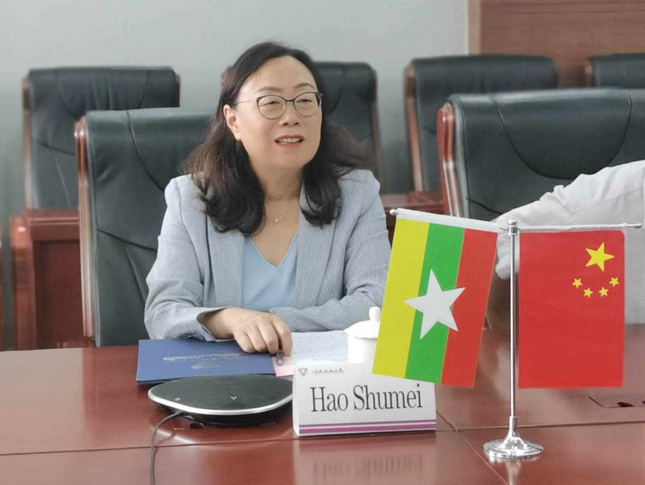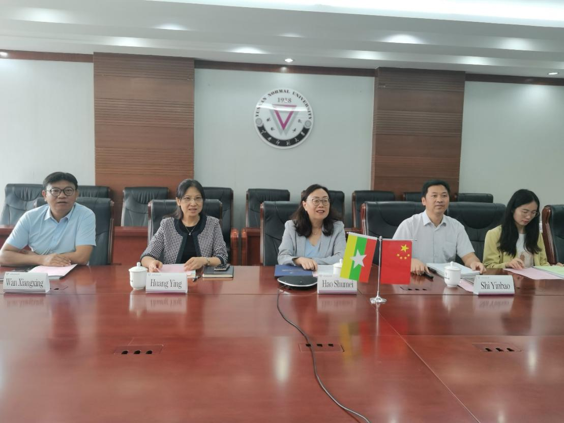副校长郝淑美、云南华文学院党委书记和雪莲、对外合作交流处处长黄瑛、缅甸东方语言与商业中心孔子课堂中方负责人施银宝作为中方理事参会;东方学校董事长及课堂缅方负责人曾圆香、校长王崇喜、校董杜子宏、校董兼董事会秘书黄如信作为缅方理事参会。会议由黄瑛主持。