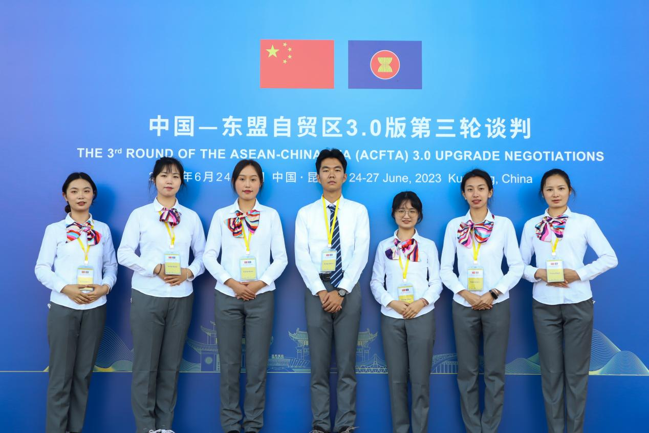 6月24至27日,中国-东盟自贸区3.0版第三轮谈判暨特别联委会第5次会议、中国-东盟自贸区联委会第16次会议在云南昆明顺利举行。会议期间,永利官网外国语学院志愿者们精神饱满地迎接外宾的到来,用流利的英语为与会代表提供了良好的服务,得到了各国代表和云南省商务厅领导的一致赞扬。
