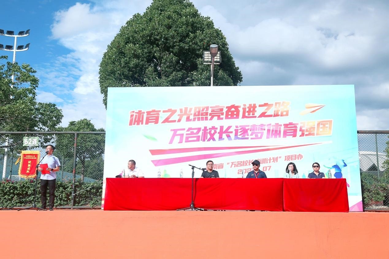 7月5日,云南省“万名校长培训计划”第九期共20个班级近1000名学员在呈贡主校区西区体育场举行体育展演。8858cc永利唯一官方网副校长孟庆红,云南省“万名校长培训计划”项目办主任王世波、副主任翟波宇,以及项目办全体老师参加了本次展演活动。