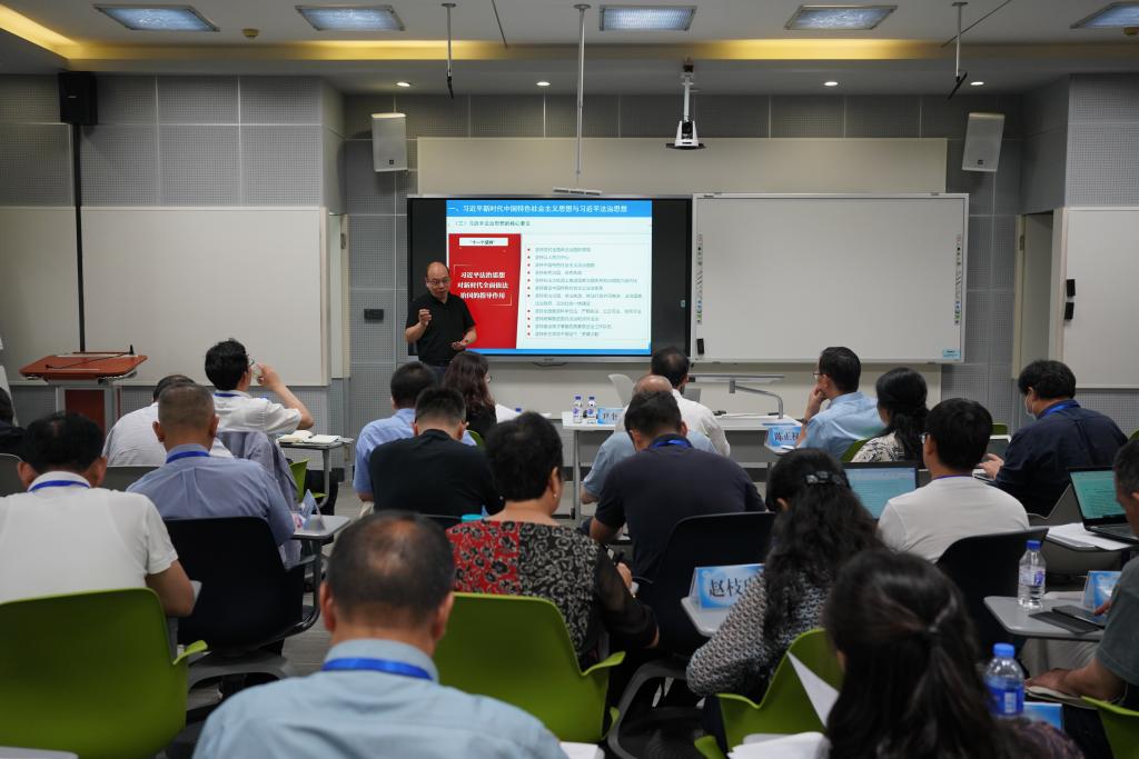 开班仪式后,全体学员听取了东北师范大学政法学院党委书记尹奎杰教授《学习习近平新时代中国特色社会主义思想在法治轨道上推进中国式现代化》和东北师范大学马克思主义学部部长庞立生教授《以大思政格局推进一流学科建设》的辅导报告。