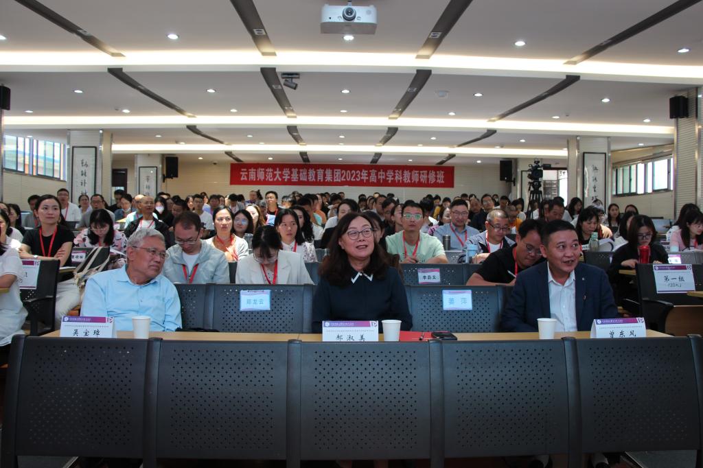 副校长郝淑美,基础教育集团办公室领导班子成员,师大实验中学、云南民族中学、附属世纪金源学校、附属官渡中学、附中呈贡校区、附中西山校区、附属丘北中学、附属镇雄中学、附属易门中学、昭阳一中、武定一中、梁河一中、威信一中、金平一中、鹤庆一中、鹤庆三中、禄劝一中、勐腊一中等9地州(市)18所学校170余名学科教师参加了开班仪式。