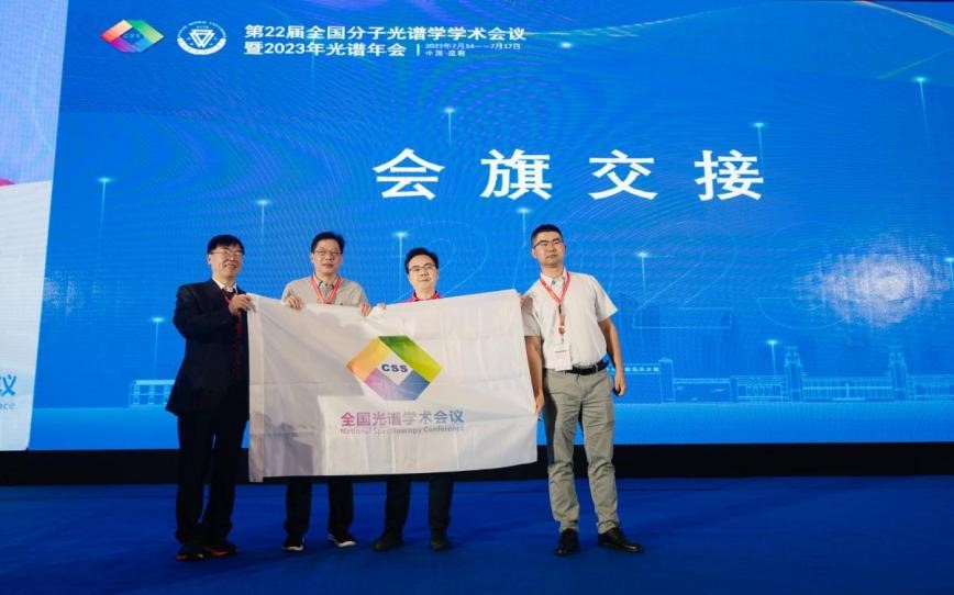 7月17日大会闭幕式宣布第23届全国分子光谱学学术会议暨2024年光谱年会暨黄本立院士百年华诞学术研讨会将由厦门大学承办,并举办了会旗交接仪式。下一届会议轮执主席、厦门大学杭纬教授上台致辞,并欢迎大家2024年厦门再聚。