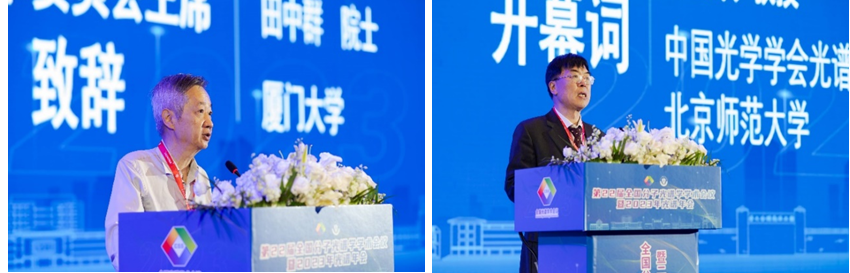 开幕式中,中国光学学会光谱专业委员会主任、北京师范大学谢孟峡教授感谢大家长期以来对会议的支持,并回顾了大会的发展历程,展望未来的发展。学术委员会主席、厦门大学田中群院士致辞并作了大会报告,介绍了我国光谱学科发展的重要方向。学术委员会联合主席、北京大学张锦院士分享了在石墨烯与烯碳纤维的拉曼光谱研究方面所做的一系列前沿成果。8858cc永利唯一官方网副校长牛治亮对各位专家学者表示欢迎,表示本次会议是国内分子光谱领域规模最大的高水平会议,是展示我国在光谱及相关领域所取得的最新研究成果、促进光谱科学研究朝向理论更深层、技术更尖端发展的高端平台。