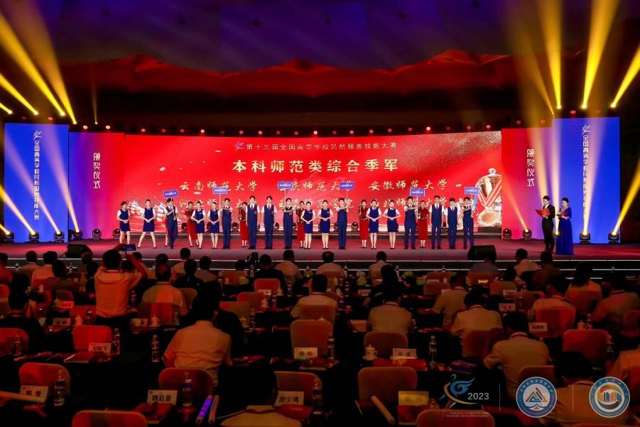 7月14日至7月27日,由中国高等教育学会、中国民航工会、中国民用机场协会指导,高校毕业生就业协会、中国教育电视台、廊坊市人民政府主办,中国教育报、中国民航报、中国民航人力资源开发中心、北京外航服务有限责任公司、中国航空运输协会客舱乘务工作委员会、北京大兴机国际机场临空经济区(廊坊)管委会协办,北京广慧金通教育集团承办的2023中国高等教育博览会产教融合系列活动第十三届全国高等学校民航服务技能大赛(以下简称技能大赛)在河北廊坊成功举办。