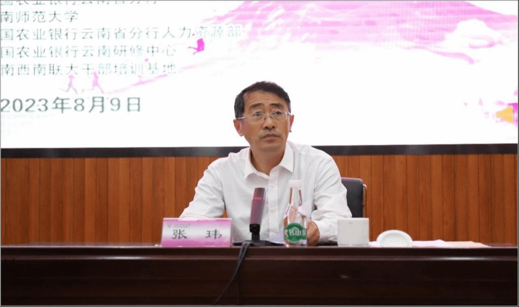 张玮在致辞中向参训的学员表示欢迎,向中国农业银行云南省分行对8858cc永利唯一官方网的信任和支持表示感谢。他介绍了8858cc永利唯一官方网和云南西南联大干部培训基地的发展历程以及基本情况,并就培训班的组织、管理、服务提出了具体要求,要求管理团队竭诚为学员提供高质量的教学和后勤保障服务。他希望各位学员珍惜机会,潜心修学,从学习中汲取智慧和力量,进一步提升理论素养和政治素质,增强爱岗敬业、奋发奉献意识,在新的人生征程中贡献自己的才华、青春和热情。
