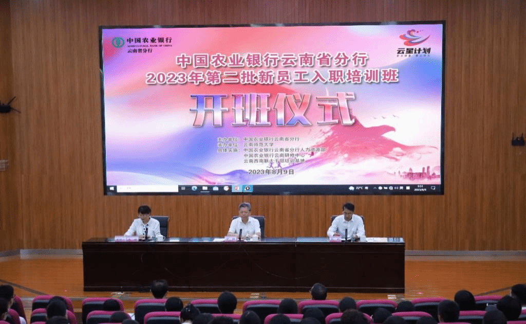 8月9日上午,由中国农业银行云南省分行主办,永利官网承办的“中国农业银行云南省分行2023年第二批新员工入职培训班”在呈贡校区汇学楼报告厅举行开班仪式。中国农业银行云南省分行党委委员、副行长高捍作开班动员及首场授课,永利官网党委副书记张玮致辞。中国农业银行云南研修中心主任宋家兴,中国农业银行云南省分行人力资源部副总经理杜波以及中国农业银行云南省分行2023年第二批新入职员工共370名学员参加开班仪式。仪式由云南西南联大干部培训基地执行主任匡锦主持。