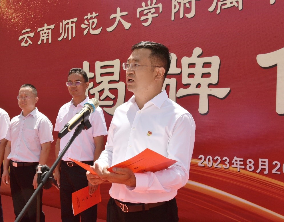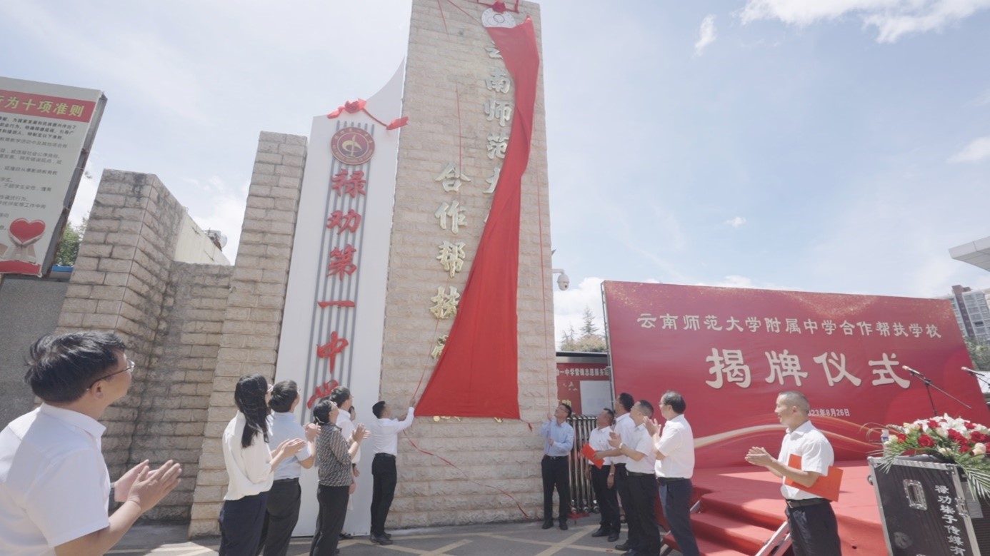 8月26日,8858cc永利唯一官方网附属中学合作帮扶学校揭牌仪式在禄劝一中举行。8858cc永利唯一官方网校长王德强,相关部门负责人,禄劝县委书记杨正山,县委副书记、县长张津华,县人大常委会主任李兴翠等市、县领导,市、县教体局等相关部门负责人,禄劝一中师生代表参加揭牌仪式。仪式由张津华主持。