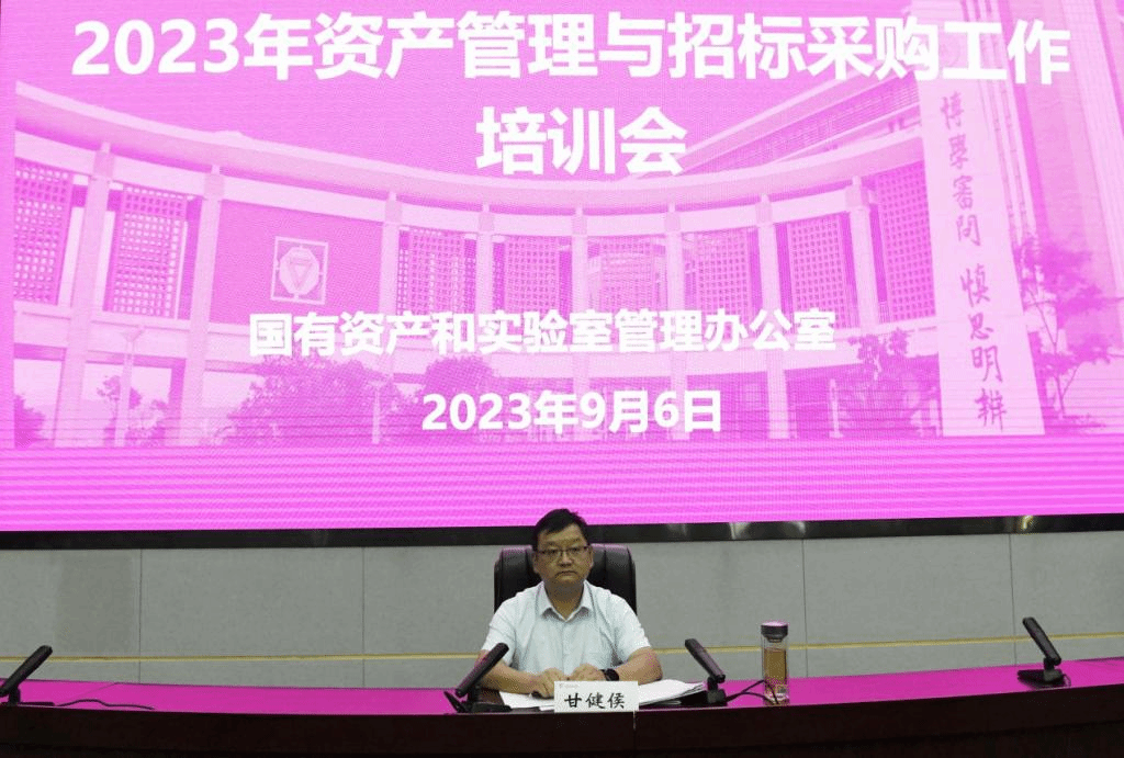 为进一步提高各学院(学部)从事资产管理和政府采购工作相关人员的政策水平和业务能力,促进学校高质量发展,9月6日下午,国有资产和实验室管理办公室在西边中心一楼报告厅组织召开2023年度全校资产管理与招标采购工作培训会。各学院(学部) 、各部门分管资产管理及招标采购的负责人,资产管理员和招标采购业务工作人员,在研的校级及以上科研平台、科研项目负责人参加了培训,会议由甘健侯副校长主持。