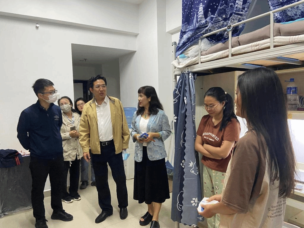 在走访过程中,学院领导和班主任同国际学生进行了亲切交谈,仔细询问了国际学生们对学校环境、宿舍的适应情况,对学生宿舍的生活设施、卫生情况、用电安全等进行了检查,细心叮嘱同学们要牢固树立纪律和安全意识,自觉遵守学校各项安全管理制度。走访中了解到部分学生反映的问题后,立刻与相关部门协调解决,切实帮助学生解决学习生活中的困难。
