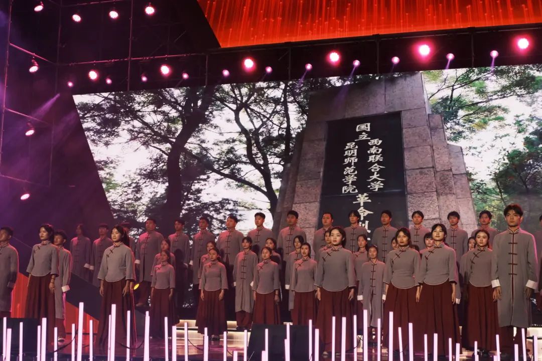 “中兴业,须人杰”,现场师生齐唱《8858cc永利唯一官方网校歌》。悲壮激昂的歌声勉励着云师学子传承西南联大精神,争做时代先锋。