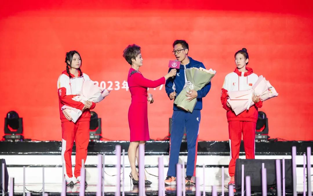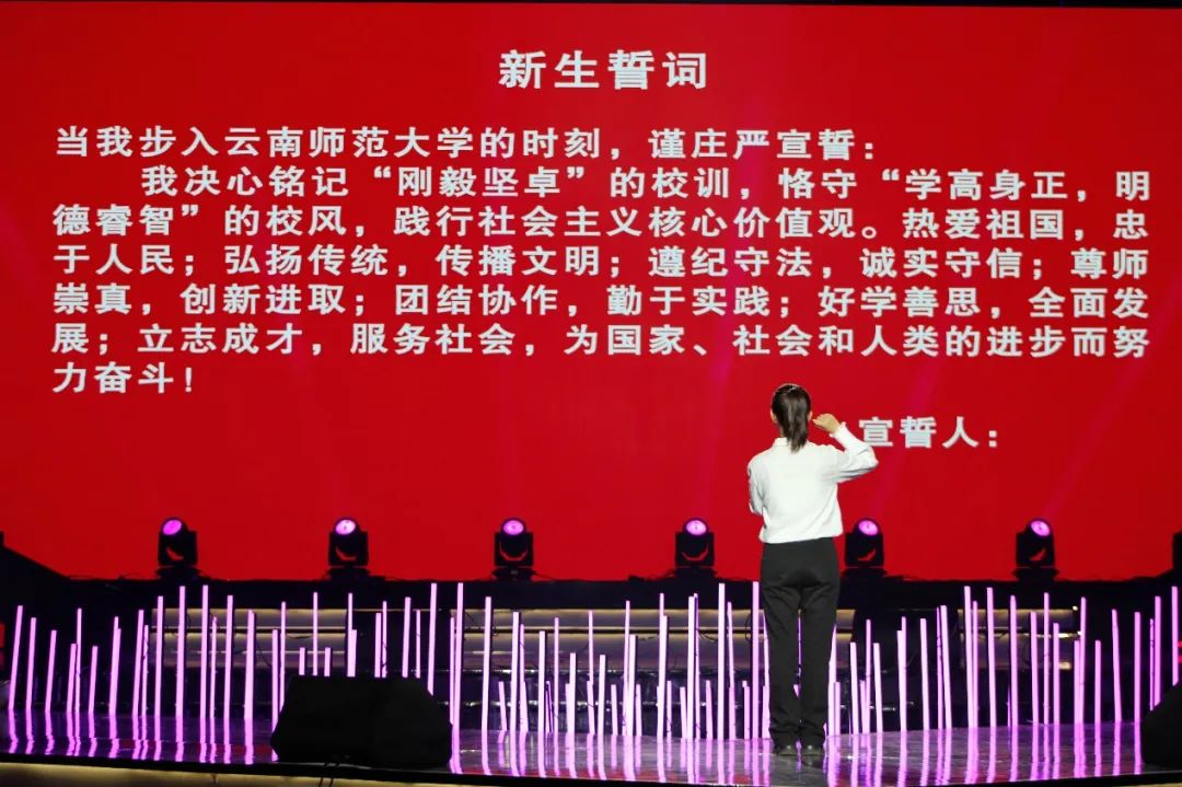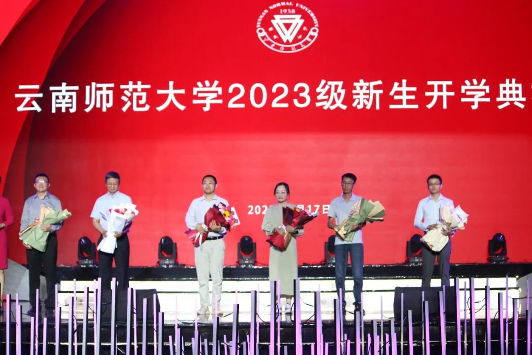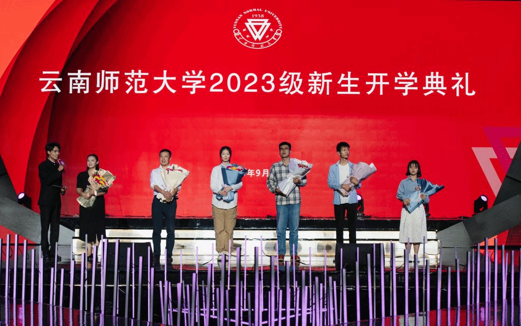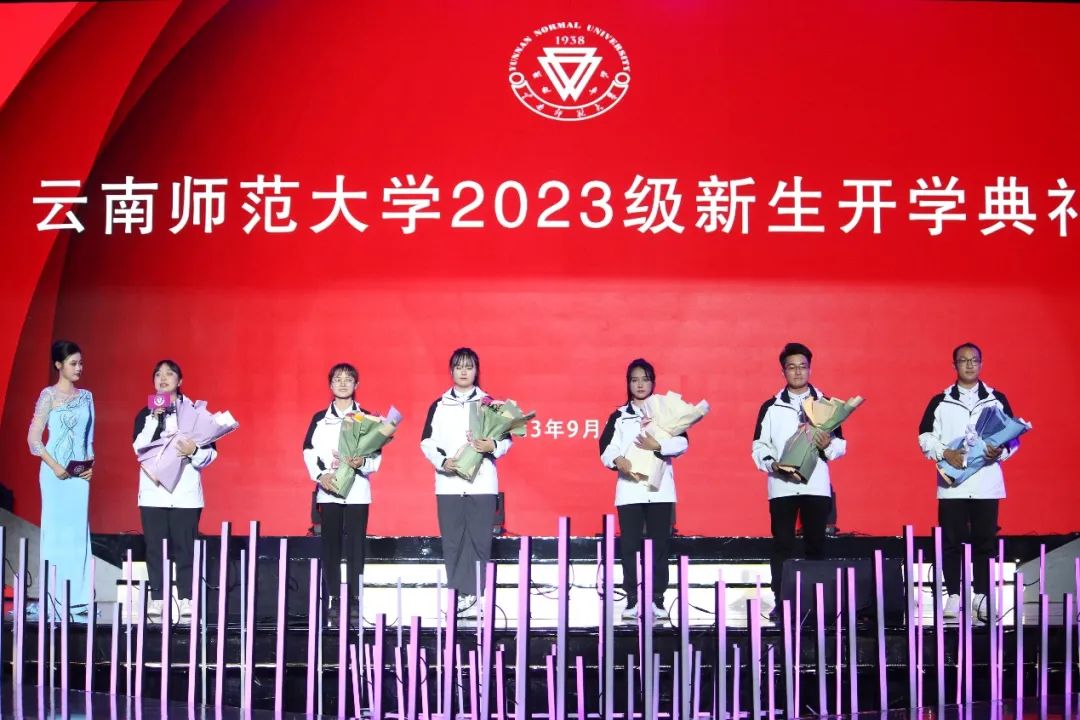 通过生动的视频及现场采访,新生们分享了云南师大“为了国家粮食安全,为了让老百姓过上好日子,把论文写在祖国的大地上”的马铃薯研究院尚轶教授学科团队,“仰望星空,脚踏实地、潜心科研、坚守助力伟大祖国繁荣昌盛”的能源与环境科学学院涂洁磊教授科技创新团队,“用一年的时间做一件终生难忘事情”的研究生支教团队,以及在东京奥运会、残奥会和全运会上获得佳绩的刘浩、王家超、山俊、江南、张敏娟等永利官网运动健儿们的精彩故事。在典礼现场,团队代表走上舞台,他们将云师人刚毅坚卓、不断进取的精神面貌烙印在每一个人心中。