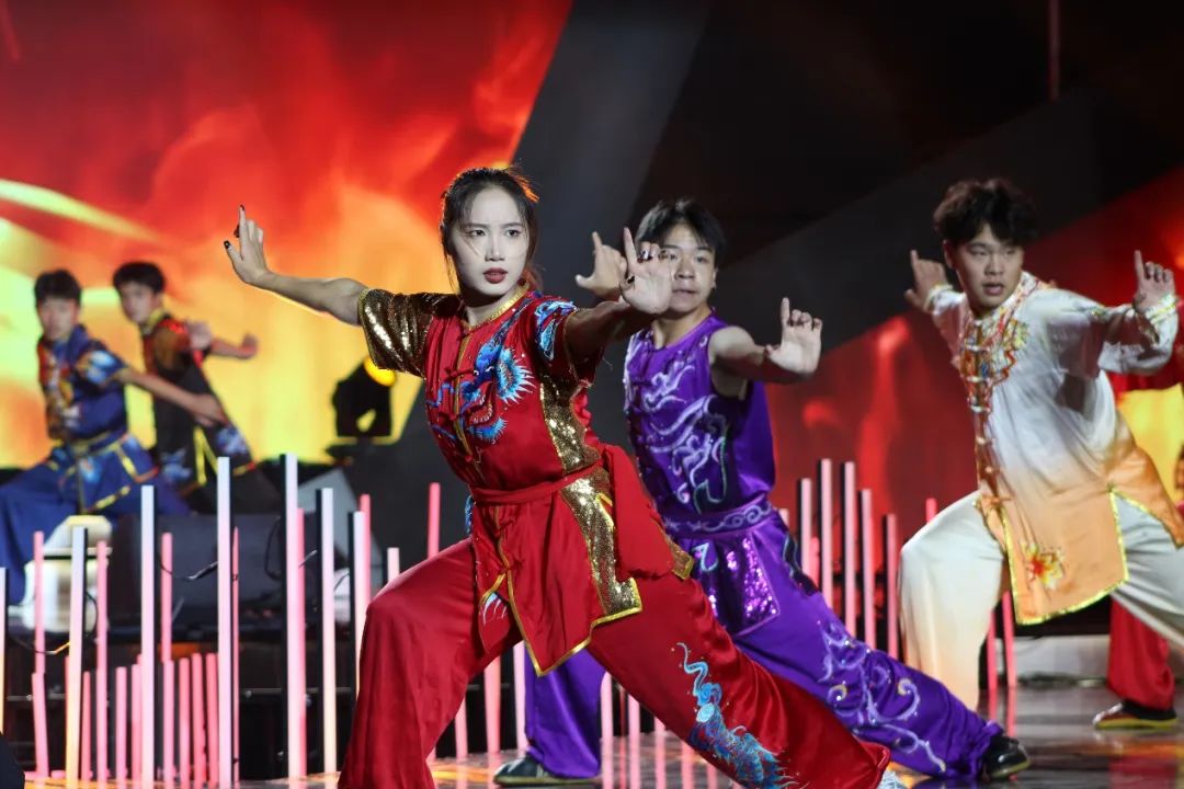 舞动青春,激情飞扬!舞蹈《炫彩云师》融合热情洋溢的啦啦操、酷炫靓丽的街舞、动感十足的拉丁舞、精妙绝伦的中华武术等多种形式,欢快活泼地演绎了云师学子亮丽多彩的青春生活,点燃了现场的气氛。
