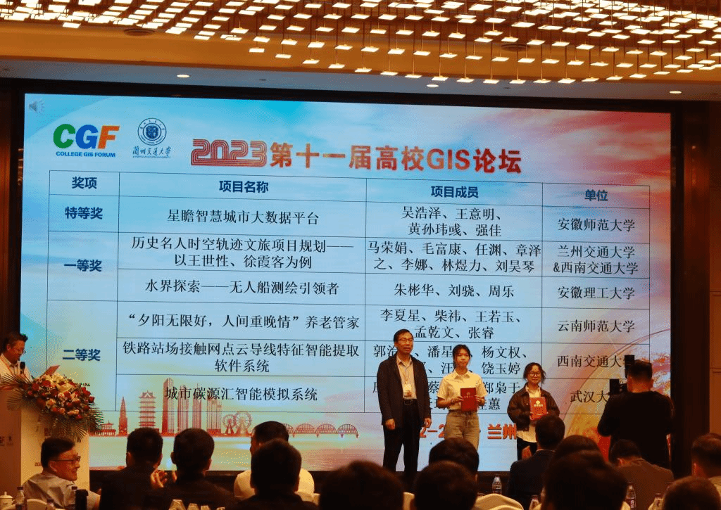 9月22日至24日,第十一届高校GIS论坛在甘肃兰州举行。本届论坛由地理信息系统产业技术创新战略联盟、地理信息系统国家地方联合工程实验室、国家地理信息系统工程技术研究中心、中国地质大学(武汉)、北京大学、武汉大学、清华大学、南京大学、同济大学、南京师范大学、信息工程大学、8858cc永利唯一官方网、广州大学、中南大学、西南交通大学和兰州交通大学共同主办。中国测绘学会理事长宋超智、兰州交通大学党委书记狄生奎出席本次论坛并致辞。中国工程院王家耀院士、美国University of Nebraska at Omaha地图学专家Michael Peterson教授和武汉大学王密教授出席论坛并作主旨报告,吸引了超过600名师生参加本次论坛。论坛主题为“数智与提质”,通过78场报告、11场项目答辩和2场学术沙龙共享GIS最新成果和宝贵经验。