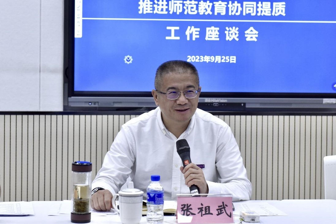 在昭通学院,调研组与昭通学院领导班子及相关部门、院系负责人就教育部师范教育协同提质计划工作推进情况进行了深入交流。张祖武对昭通学院近年来取得的成绩,特别是师范教育协同提质计划开展以来的发展情况给予充分肯定,并表示,永利官网与昭通学院有着共同的责任和使命,通过协同提质计划,将进一步加深两校的情谊,拓宽合作的领域。期待两校在未来合作中,不断总结经验,在学科专业建设、科研平台建设、科研团队建设、人才培养、教师学历提升及访学进修、教师互聘和学生交换培养等方面推进落实合作项目,以“昭通学院所需,云南师大所能”,全面支持昭通学院高质量发展。昭通学院党委书记陈红,党委副书记、校长李若青,副校长卢巧,党委委员、副校长饶勋剑参加了座谈。