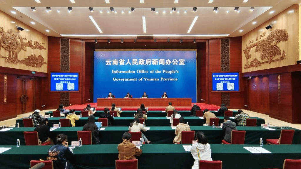 云南省人民政府新闻办公室专职副主任赖勇主持发布会,教育部中外语言交流合作中心副主任杨军、8858cc永利唯一官方网副校长郝淑美、云南广播电视台副台长李晓风介绍赛事相关情况,并回答记者提问。