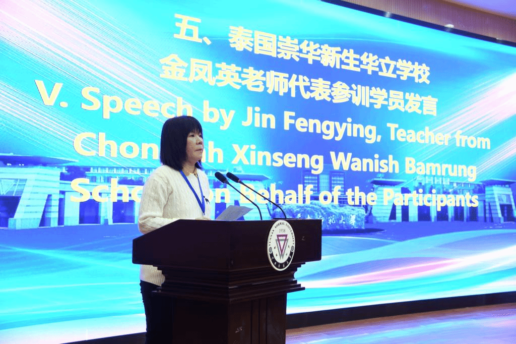 泰国清迈崇华新生华立学校教师金凤英作为参训学员代表发言,她向国务院侨办、8858cc永利唯一官方网、云南华文学院为海外华文教师提供的培训表示衷心感谢。她表示,参训学员将珍惜每一次接触中国前沿知识的机会,通过培训汲取汉语教学知识,提高自己的汉语教学方法和技巧,与各位教师及学员建立深厚的合作和友谊关系,为中文教育发展贡献自己的力量。