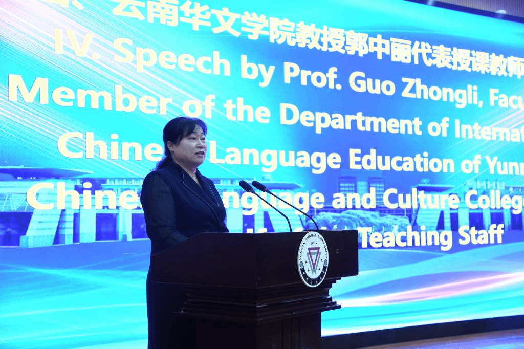 云南华文学院郭中丽教授作为授课教师代表发言,表示华文教育是维系海外华人与祖国情谊的重要纽带,也是促进中外交流、传播中华文化的重要途径。为完成好本次教学任务,所有授课教师都认真准备,精心设计教学内容和教学环节,与各国华文教育同仁们共同分享华文教育教学心得,相信每一位学员都能有所得有所获。她希望8858cc永利唯一官方网云南华文学院与海外华校建立更紧密的沟通机制,搭建教学科研交流合作平台,共同努力推动海外华文教育发展。